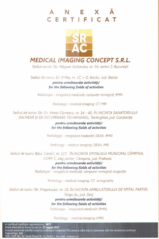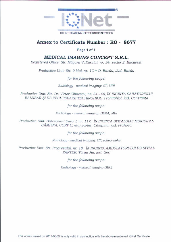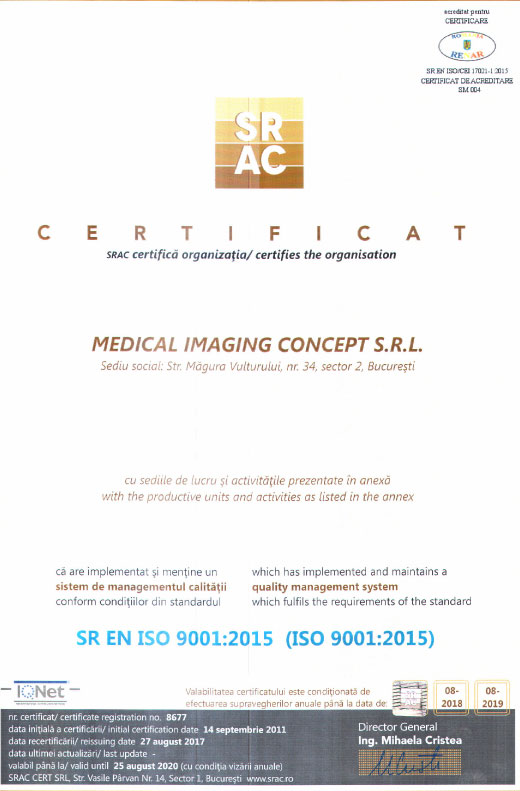 - in urma investigatiei in decurs de maxim 24 de ore de la efectuarea acesteia i se vor inmana pacientului un CD cu toate imaginile achizitionate in timpul examinarii, minim 2 filme si interpretarea scrisa a investigatiei elaborata de medicul specialist.
